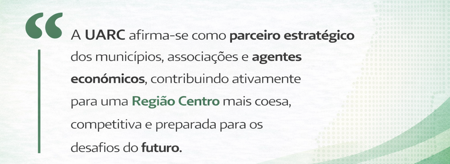 A UARC afirma-se como parceiro estratégico dos municípios, associações e agentes económicos, contribuindo ativamente para uma Região Centro mais coesa, competitiva e preparada para os desafios do futuro.